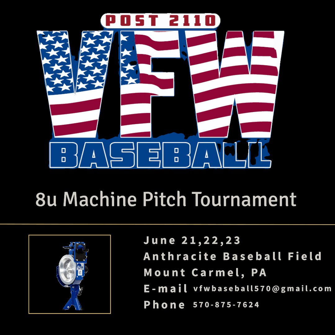 06/20/2025 | Weekend | Rookie | VFW 8U Machine Pitch Tournament | Anthracite Baseball Field, 399 N Hickory St, Mt Carmel, PA 17851 | https://static.wixstatic.com/media/af72cf_16bfdd91815b4fd4b19961fd154e4186~mv2.jpg |